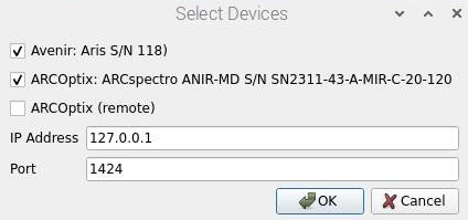 To connect to multiple spectrometers, use the Device Manager (Figure 2.21), which can be accessed using . The Device Manager window will display all supported and connected devices. To connect: